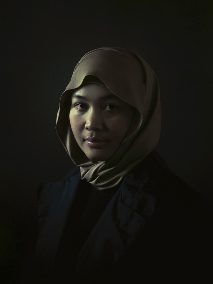 Nama Fotografer: Heun Jung Kim. Deskripsi Gambar: 'Konco wingking,' yang berarti 'teman di belakang,' mencerminkan peran tradisional wanita Jawa yang mendukung suami mereka. Sementara peran perempuan telah berkembang, banyak yang masih diam-diam membentuk kehidupan keluarga. Potret ini mengeksplorasi tradisi, identitas, dan kekuatan melalui kontras antara jilbab subjek dan mantel suaminya. Copyright: Β© Heun Jung Kim, Korea, Republic Of, 1st Place, National Awards, Sony World Photography Awards 2026