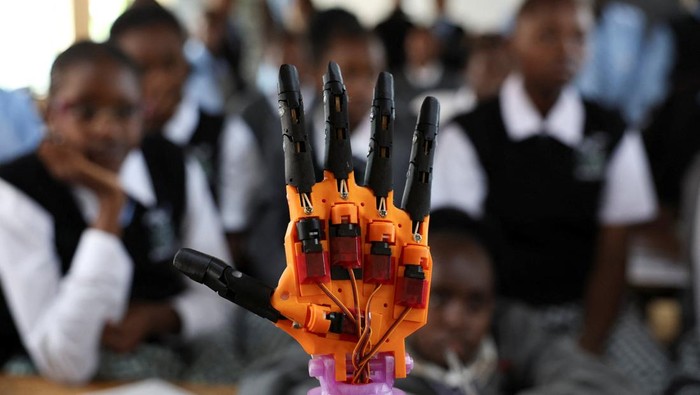 Kehadiran lengan robot berbasis AI ini menjadi harapan baru dalam dunia pendidikan, khususnya bagi penyandang disabilitas pendengaran. REUTERS/Monicah Mwangi