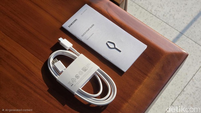 Samsung hanya memberikan kabel data, erta petunjuk penggunakan dan SIM card injector. Foto: Adi FR/detikINET
