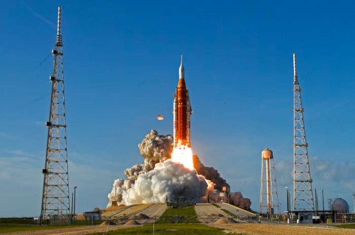 Misi Artemis II NASA, yang terdiri dari roket Space Launch System (SLS) dengan kapsul awak Orion, lepas landas dari Kennedy Space Center di Cape Canaveral, Florida. Foto: NASA