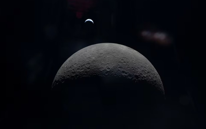 Awak Artemis II mengabadikan pemandangan samar Bumi berbentuk seperti sabit di atas cakrawala di sisi jauh Bulan, difoto dari pesawat ruang angkasa Orion selama misi terbang lintas Bulan pada 6 April. Foto: NASA
