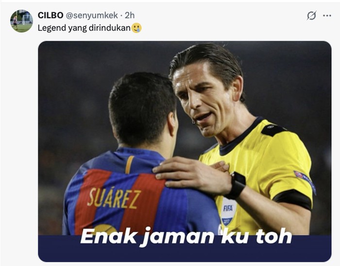 Rindu masa kejayaan. Meme ini menyindir era emas Barcelona yang kini terasa semakin jauh. Foto: X.com