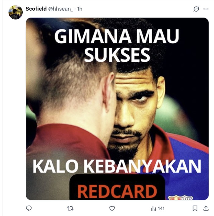 Sindiran keras soal disiplin tim. Terlalu banyak kartu merah dianggap jadi salah satu penyebab kegagalan di Eropa. Foto: X.com