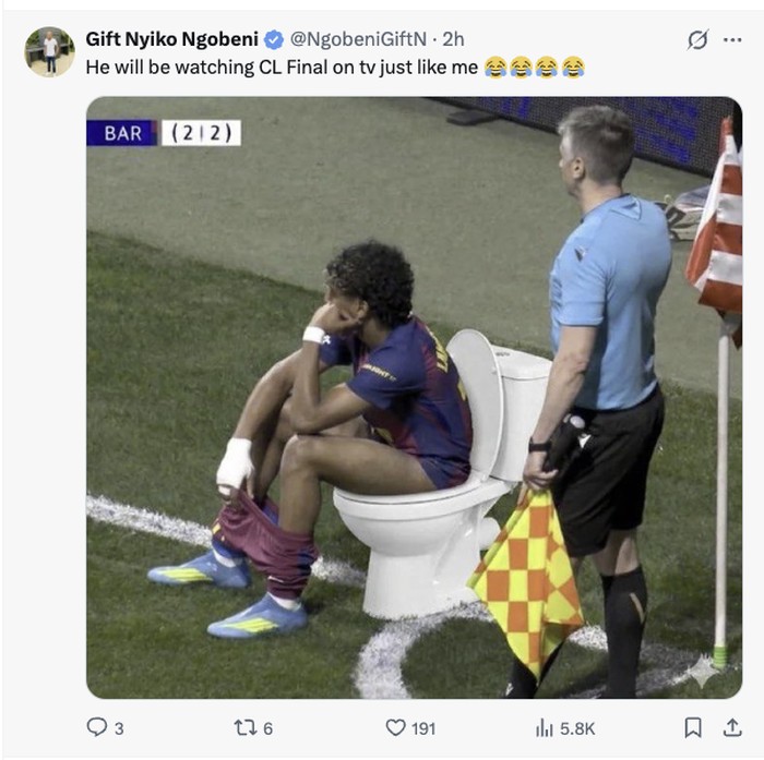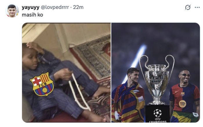 Netizen membuat meme Yamal sudah tua pun Barca masih belum menggondol piala Champions. Foto: X.com