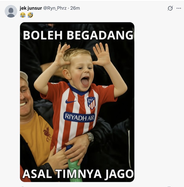 Meme pahit ini menyindir Barcelona saat berhadapan dengan Atletico di Liga Champions. Foto: X.com