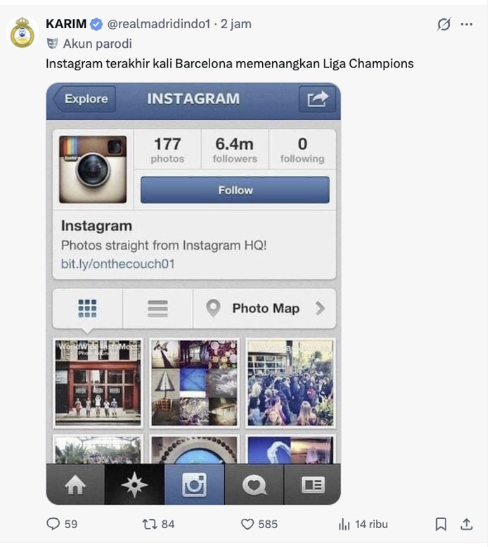 Seberapa lama sudah? Bahkan tampilan Instagram pun ikut berubah sejak terakhir kali Barcelona juara Liga Champions. Foto: X.com