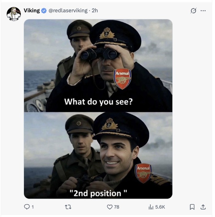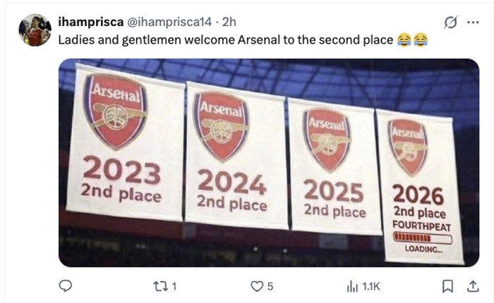 βLadies and gentlemenβ¦ Welcome Arsenal to the second place! 2023 β | 2024 β | 2025 β | 2026 β Loadingβ¦ Fourthpeat in progress Foto: X.com