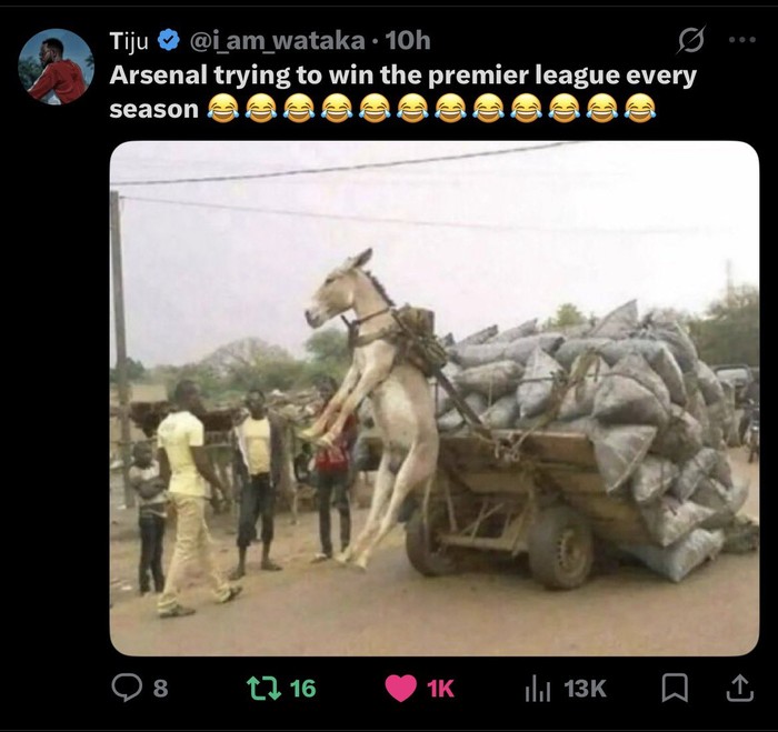 βArsenal mencoba juara Premier League setiap musimβ¦ Hasilnya selalu sama: Jatuh di saat-saat krusial β Foto: X.com