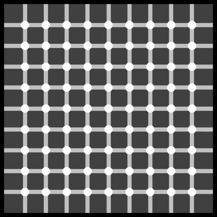 Neuron di area terang menekan sekitarnya lebih kuat di persimpangan, menciptakan ilusi bintik gelap. Untuk melihatnya jelas, gunakan penglihatan tepi. Mekanisme ini juga membantu otak mendeteksi kontras dalam kehidupan nyata. Foto: Boredpanda