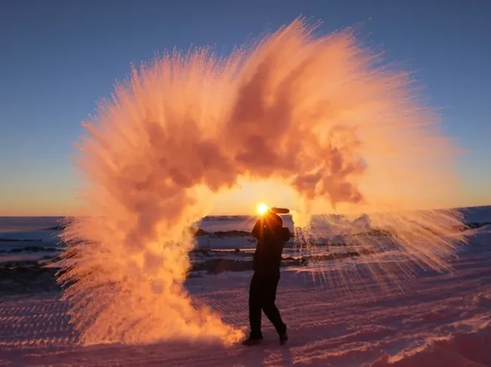 Inilah yang akan terjadi jika kalian membuang air panas ke udara di Antartika yang membeku. Foto: via BrightSide