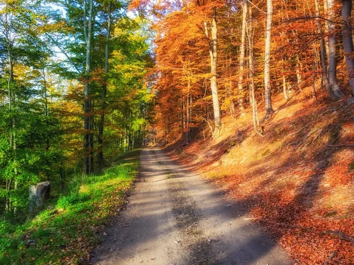 Hutan musim panas di kiri, bertemu dengan hutan musim gugur di kanan yang berangsur menguning. Ini foto asli, bukan AI. Foto: via BrightSide