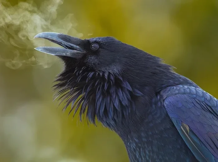 Ini bukan foto AI gagak mengepulkan asap rokok ya. Ini adalah foto gagakΒ menghembuskan nafas di suhu udara musim dingin. Foto: via BrightSide