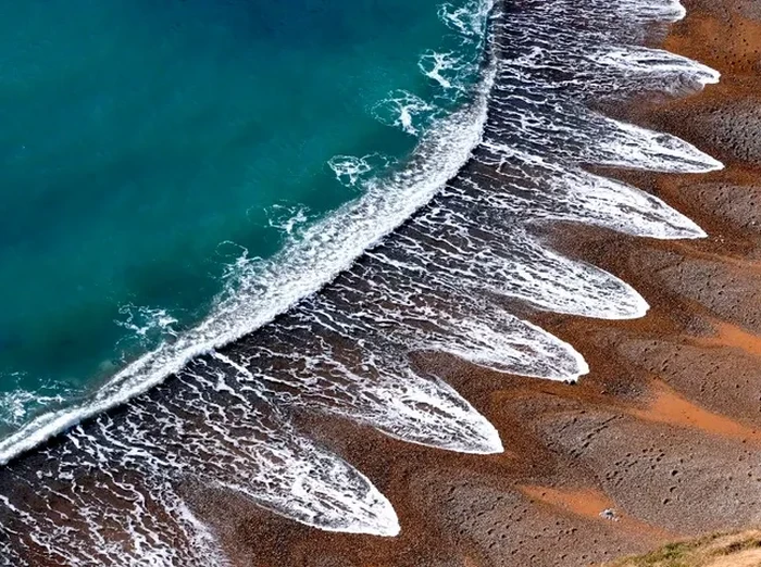 Garis pantai yang tak biasa menimbulkan derai ombak unik yang terbentuk secara alami di sebuah pantai di Inggris. Foto: via BrightSide
