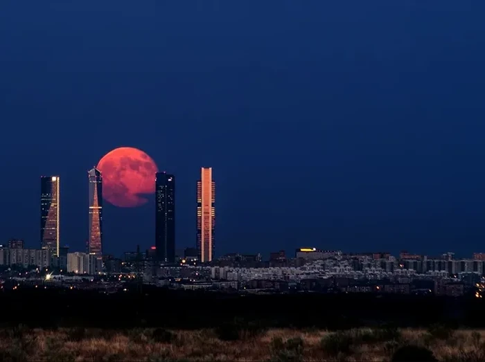 Bulan purnama merah darah terbit di langit Madrid, Spanyol. Foto: via BrightSide