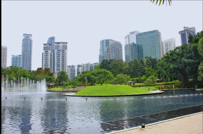 Taman hijau ditengah gedung pencakar langit
