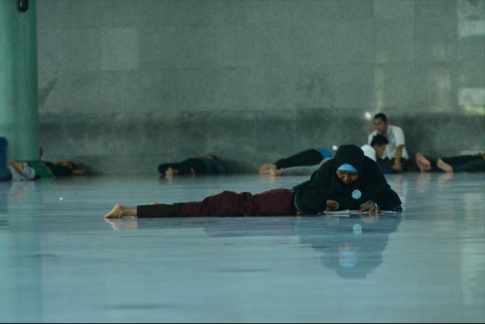 Seorang ibu yang mengajarkan anak BTQ saat bulan puasa.