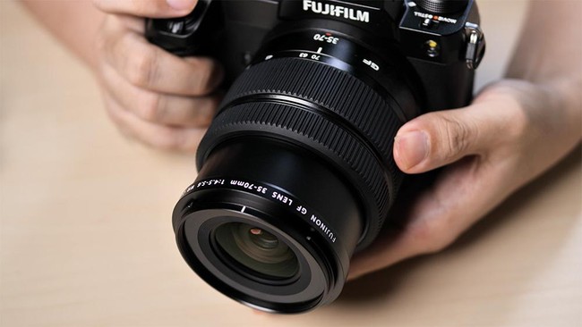 Lensa GFX 35-70mm f/4.5-5.6 ini unik karena punya desain yang collapsible, lebih pendek saat disimpan, tidak memiliki aperture ring tapi sudah WR (Weather Resistant). Ukurannya dan beratnya termasuk sangat ringkas relatif terhadap lensa medium format lainnya yang biasanya mencapai 1 kg. Lensa ini juga punya motor fokus STM yang mulus dan suaranya halus, ideal untuk merekam video juga. Lensa baru ini bisa didapatkan dalam paket pembelian dengan GFX50S II dengan total harga Rp 69.999.000.
