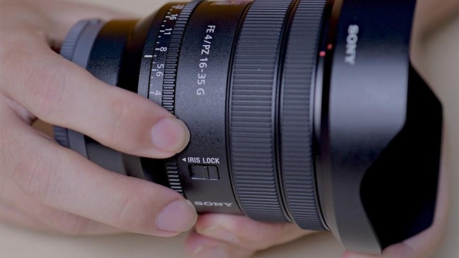 Kita juga bisa mengatur zoom lensa lewat ring zoom. Aperture ring juga tersedia, yang mana kita bisa pilih dari f/4 sampai f/22 atau otomatis. Aperture ring ini bisa diatur clicky atau clickless. Kalau diatur Clickless kita bisa mengubah bukaan dengan mulus. Biasanya videografer lebih memilih clickless sedangkan fotografer clicky.