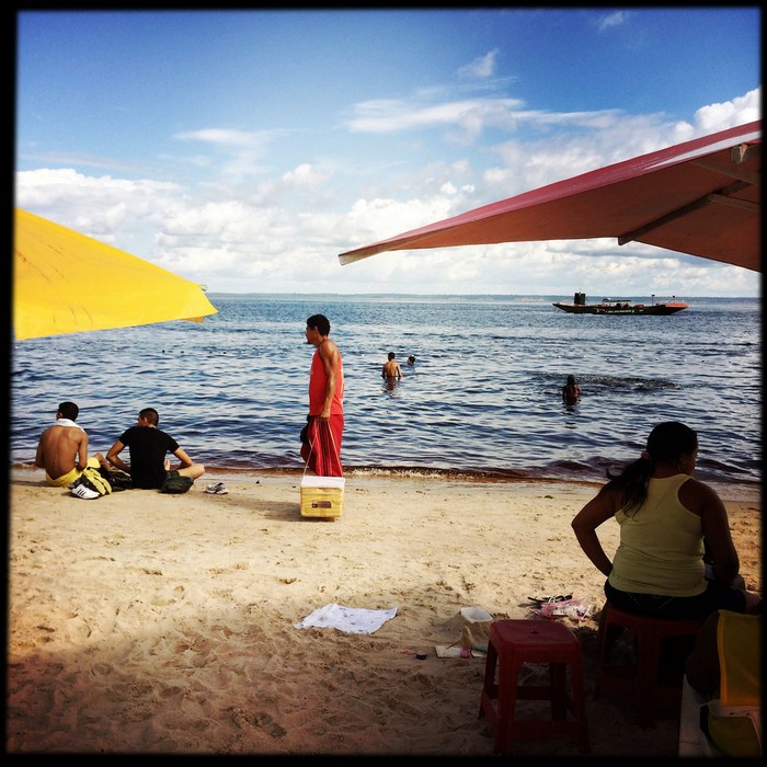 Sungai Rio Negro, Amazon, Brazil. Aslinya air sungai berwarna hitam. Namun akibat pantulan cahaya, tidak sehitam aslinya. (Foto: Mast Irham)
