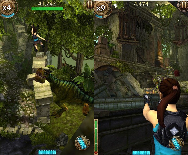 Namun, jalur lari yang ditawarkan oleh game ini nyatanya cukup menantang. Sedikit tricky memang, salah sedikit Anda bisa terjatuh atau menabrak bangunan yang melintang. Selain melompat dan menunduk, Lara Croft juga dapat berlari menyamping di atas tembok. Untuk lebih mempercantik gameplay, developer pun kemudian memberikan efek slow motion ketika Lara Croft melompati jurang.