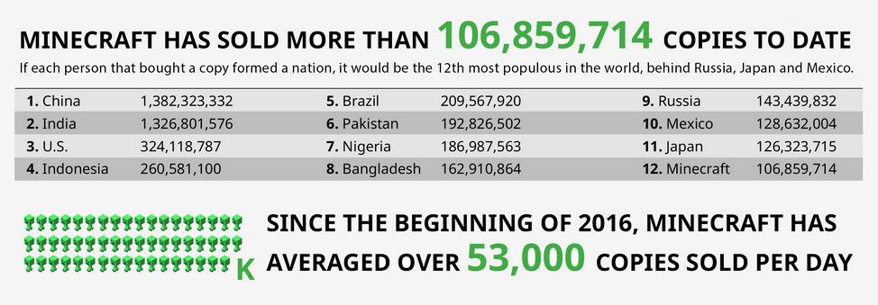 Director of Creative Communications Mojang Owen Hill mengungkapkan, sejak awal 2016, game yang memulai debutnya lima tahun lalu ini rata-rata terjual sekitar 53 ribu dalam sehari.