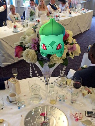 Hasilnya, para tamu mendokumentasikan pernikahan Elizabeth dan Joe dengan cara yang tak biasa. Foto-foto pernikahan mereka selalu dihiasi Pokemon di satu titiknya, seperti Bulbasaur sampai Venonat.