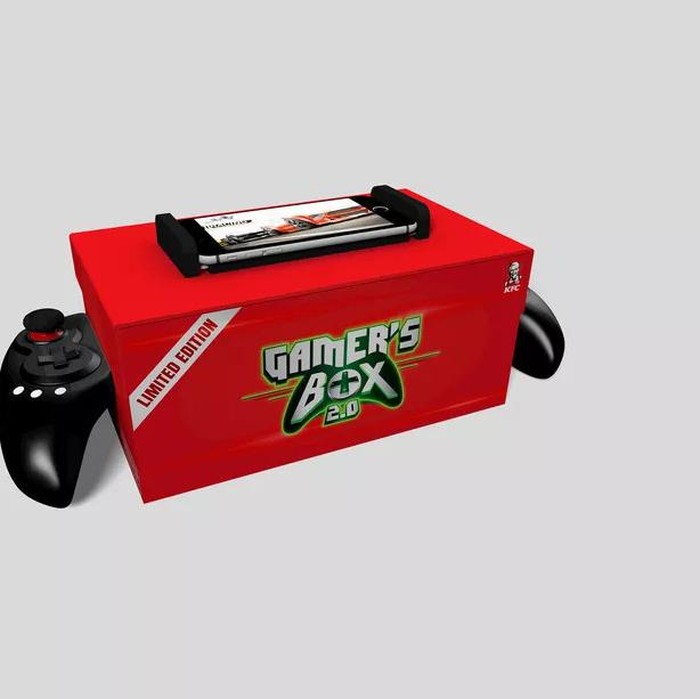 Karena kotak makanan terbaru KFC ini, selain berfungsi sebagai wadah makanan, bisa berfungsi sebagai kontroler game untuk bermain game di perangkat smartphone. Oleh KFC, kotak uniknya ini diberi nama Gamer's Box 2.0.