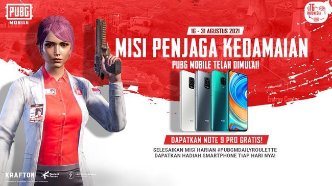 Dalam rangka memeriahkan hari kemerdekaan Indonesia, PUBG Mobile membagikan Xiaomi Redmi Note 9 Pro setiap harinya sampai akhir Agustus mendatang, yaitu dari 16 - 31 Agustus 2021.
