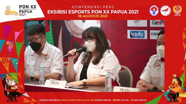 "Total ada empat game yang akan dipertandingkan, di antaranya Free Fire, eFootball PES 2021, Mobile Legends dan Lokapala," kata Gloria Famiela, Ketua Pelaksana Eksibisi Esports PON XX Papua 2021, dalam jumpa pers virtual, Jumat (20/8/2021).