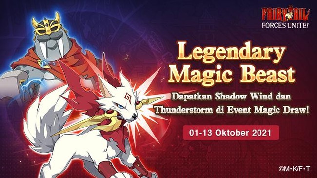 Event terbaru Fairy Tail: Forces Unite!, Magic Draw, menghadirkan dua Magic Beast terbaru. Kalian berkesempatan memiliki Thunderstorm dan Shadow Wind.