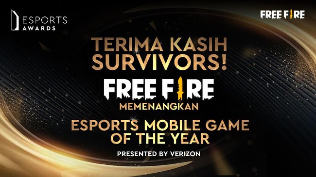 Free Fire, berhasil menyabet penghargaan sebagai Esports Mobile of the Year persembahan dari Verizon di ajang penghargaan Esports Awards 2021. Ini menjadi gelar kedua yang diterima, setelah sebelumnya mereka terpilih menjadi Game Esports Terfavorit.