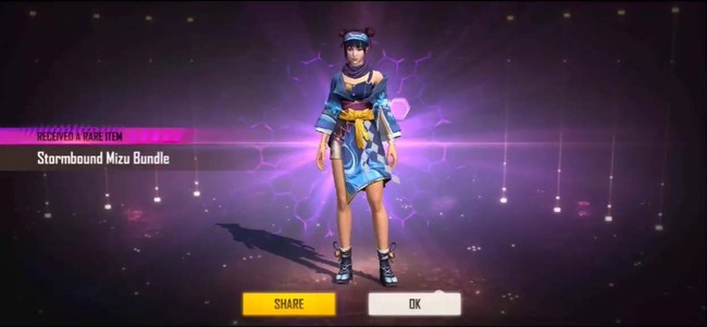 Stormbound Mizu merupakan Bundle bertemakan Jepang, di mana ditujukan untuk karakter perempuan di Battle Royale besutan Garena Indonesia ini. Pemain bakal mendapati Bundle yang didominasi warna biru, serta rambut kuncir dua yang terlihat imut.