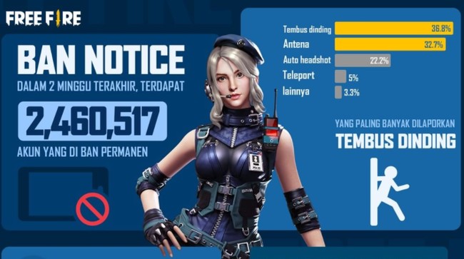 Garena Indonesia, mengumumkan bahwa mereka telah memblokir banyak akun karena melakukan kecurangan. Kurang lebih, dua juta pemain dipastikan tidak dapat bermain selamanya.