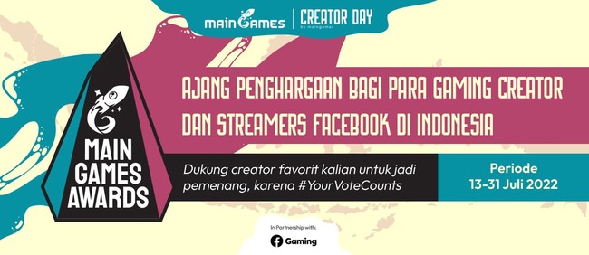 Periode voting telah dimulai dan akan dibuka hingga 31 JulI 2022. Komunitas bisa mendukung favorit streamer atau creator Facebook Gaming kalian lewat website resmi dari MainGames di www.maingames.com.