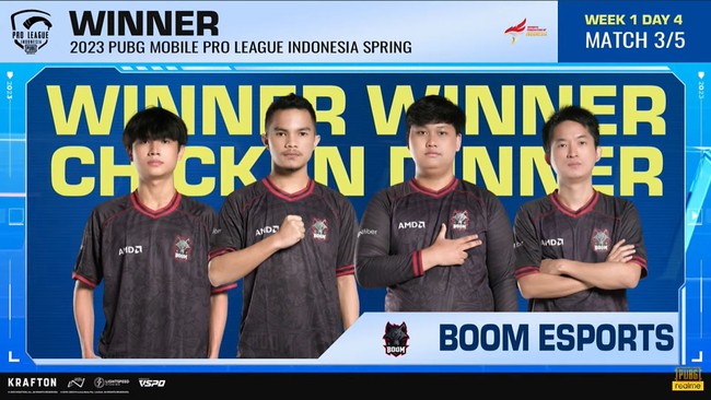 Kompetisi PUBG Mobile bertajuk PMPL ID Spring 2023 resmi berakhir. Boom Esports sukses menyabet gelar juara, dan menjadi wakil Indonesia di PUBG Mobile Super League (PMSL).
