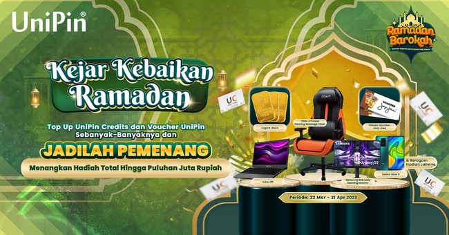Menyambut bulan suci Ramadan 1444H, UniPin menyediakan berbagai rangkaian promo top-up melalui program Ramadan Barokah. Melalui program ini, ragam hadiah seperti item code, merchandise eksklusif, hingga grand prize bisa kamu dapatkan selama periode 22 Maret hingga 28 April 2023.