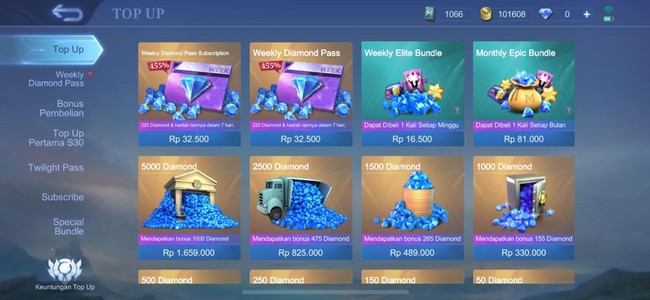 Keuntungan utama dari top up diamond di Mobile Legends adalah memungkinkan pemain untuk memperoleh hero, skin, dan item yang mempercepat perkembangan dalam permainan. Selain itu dengan top up diamond kamu bisa meningkatkan penampilan hero, serta memberikan akses ke berbagai event dan hadiah khusus.