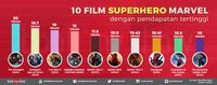 Seperti dikutip detikINET dari Box Office Mojo, berikut 10 daftar film superhero Marvel dengan pendapatan tertinggi:
