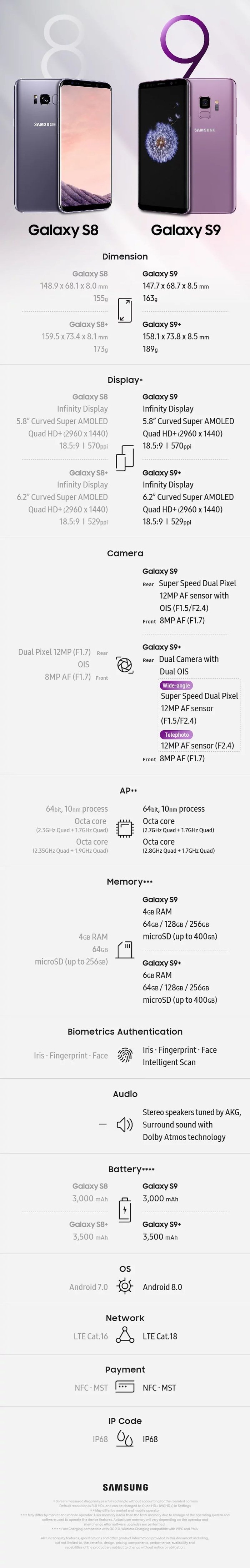 Berikut infografis yang menampilkan perbedaan spesifikasi antara Galaxy S8 dan Galaxy S9: