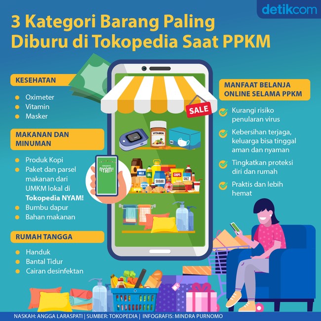 Jakarta - Adanya PPKM Darurat membuat masyarakat mencari barang di marketplace seperti Tokopedia, untuk mendukung aktivitas di rumah saja. Berikut 3 kategori barang yang paling diburu saat PPKM.