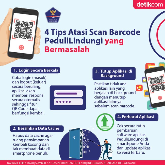 Jakarta - Scan barcode PeduliLindungi kini diberlakukan untuk masuk ke dalam berbagai ruang publik. Namun, aplikasi terkadang mengalami error dan tidak bisa melakukan scan barcode. Atasi dengan cara berikut ini.