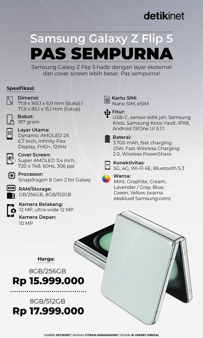 Jakarta - Samsung Galaxy Z Flip 5 hadir dengan layar eksternal dan cover screen lebih besar. Pas sempurna!