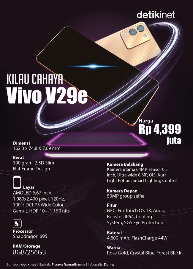 Jakarta - Vivo V29e hadir dengan warna mewah dan berkelas serta spesifikasi jempolan.