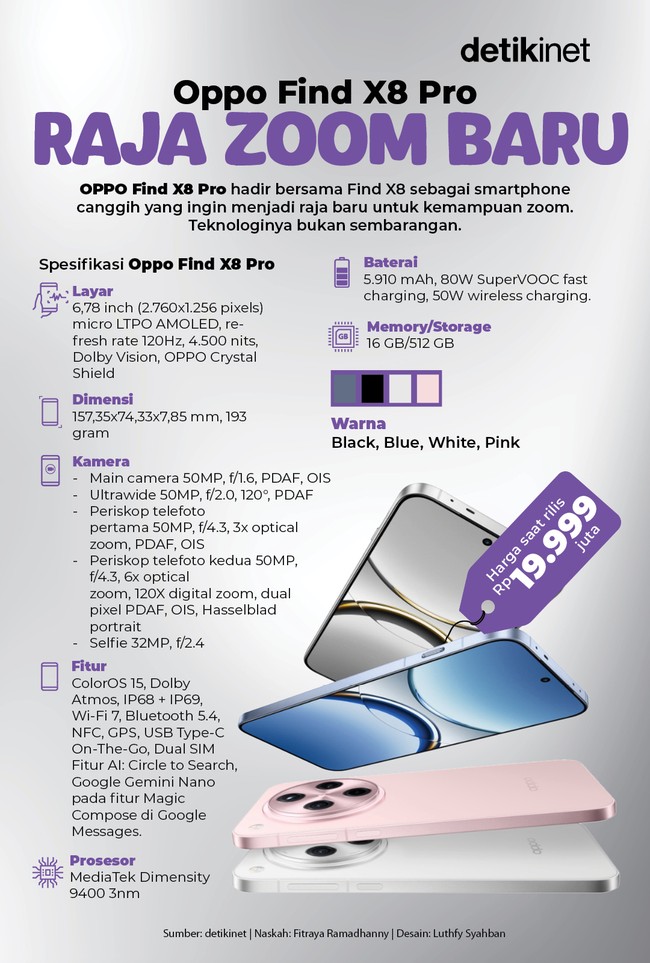Jakarta - OPPO Find X8 Pro hadir bersama Find X8 sebagai smartphone canggih yang ingin menjadi raja baru untuk kemampuan zoom. Teknologinya bukan sembarangan.