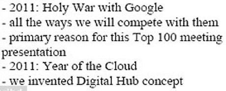 "Apple dalam bahaya menganut paradigma usang terlalu lama," tambah Jobs dalam email tersebut. Ia menyatakan Google dan juga Microsoft mulai mengejar ketertinggalan teknologi meskipun Apple masih di depan.