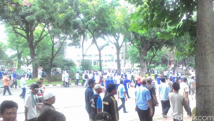 Usai melakukan pertemuan dengan Gubernur dan Kadishub, ribuan sopir tersebut melakukan long march ke kawasan Istana di Jl Medan Mereka Utara.