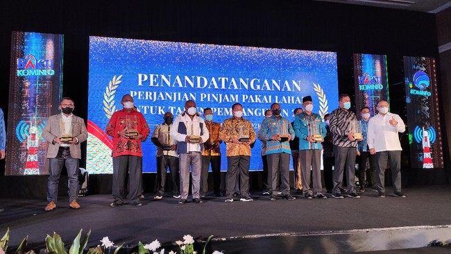Kepastian tersebut usai Badan Aksesibilitas Telekomunikasi dan Informasi (Bakti) Kementerian Komunikasi dan Informatika (Kominfo) meneken perjanjian pinjam pakai lahan dengan kepala daerah di Hotel Shangri-La, Jakarta, Senin (13/12/2021).