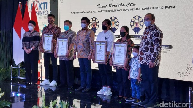 Pemerintah melalui Kementerian Komunikasi dan Informatika (Kominfo) memberikan penghargaan piagam kehormatan kepada korban serangan Kelompok Kriminal Bersenjata (KKB) di Puncak, Papua.
