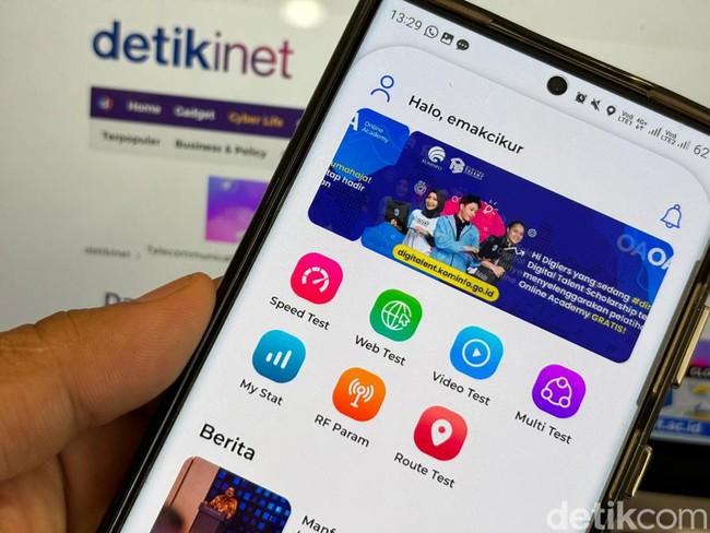 "Kan itu bisa pencet fitur speed test yang diukur bisa ke video atau layanan website, nanti keluar hasilnya. Nah, misalnya, hasilnya kurang bagus, ada fitur di dalamnya itu untuk melakukan aduan ke PMT (Pusat Monitoring Telekomunikasi) untuk melaporkan hasilnya. Ini sekaligus nanti ada aduan dari teman-teman," tuturnya.
