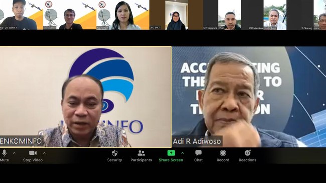 "Zoom ini menggunakan Satelit Satria-1 dan jaringan Satria-1. Bisa dibuktikan bahwa semuanya sudah mulai jalan," ucap Adi.
